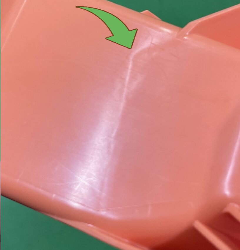 線状の模様が出てしまうため、外観の面でも問題がありますが、それだけでなくウェルドラインに沿って割れやすいといった、品質も懸念される不良の一つです。